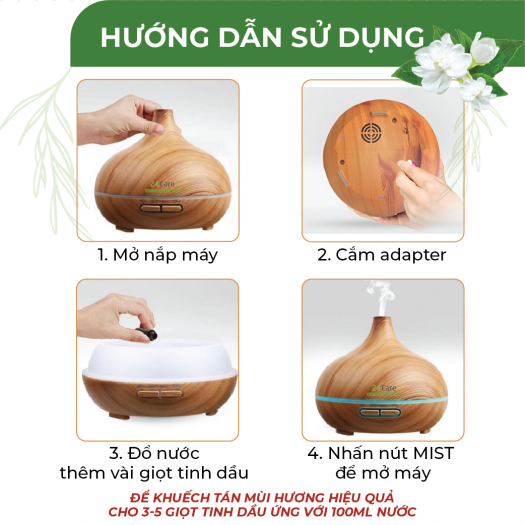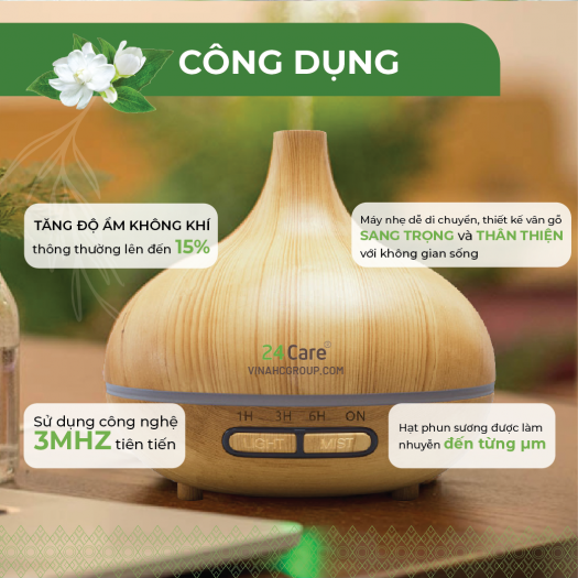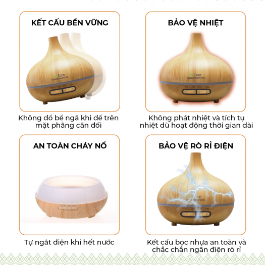 Công dụng: khuếch tán hương thơm hiệu quả, tạo cảm giác thư giãn, tăng năng suất làm việc, hỗ trợ ngủ ngon và sâu